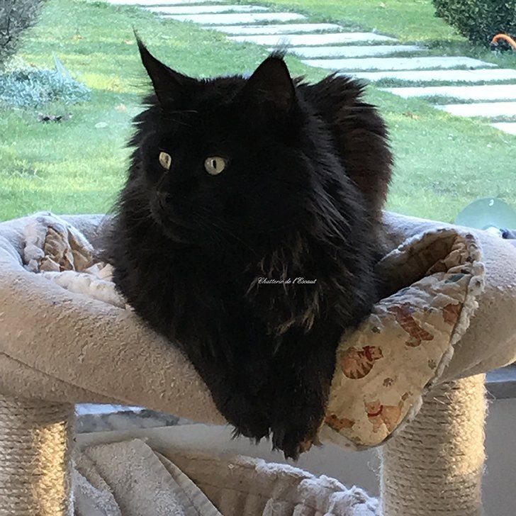Rentrés des USA en France en 1996, nous avons décidé de lancer notre élevage de Maine Coon , race très peu connue en France à l’époque. Une amie habitant le même village gardait les mâles, tandis que nous nous occupions des femelles. Nous avons tenté notre première exposition près de Beauvais et, surprise, Monoï termine sur le podium. Ce fut la première d’une longue série de réussite.